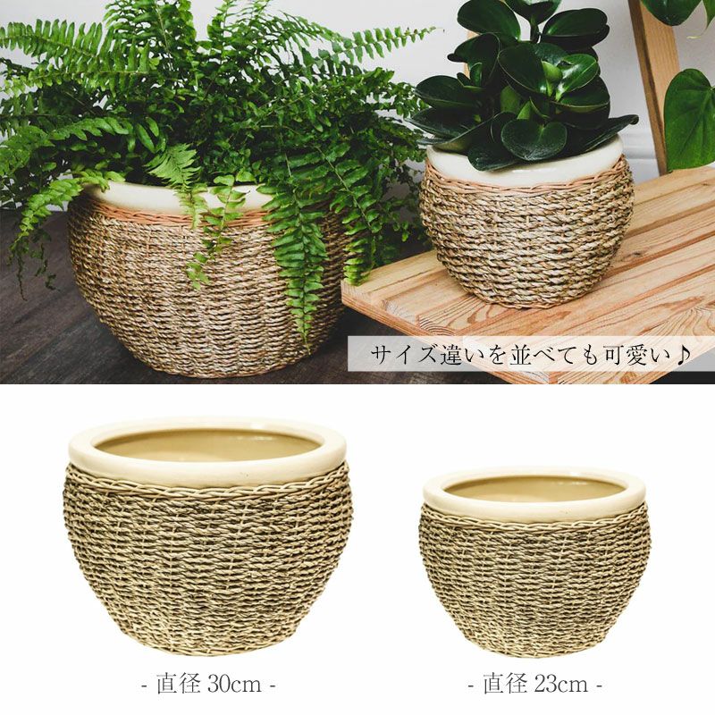 他の画像を見る 丸いフォルムと水草の編み込みが温もりを感じるオシャレな鉢カバー IVYLINE シーグラス ポットカバー 2個セット ナチュラル 直径30cm 直径23cm ナチュラル 鉢 カバー 陶器 鉢底穴なし 観葉植物 丸型 ボウル型 おしゃれ 販売価格 ¥ 8,380 税込 カートに入れる お気に入りに登録する