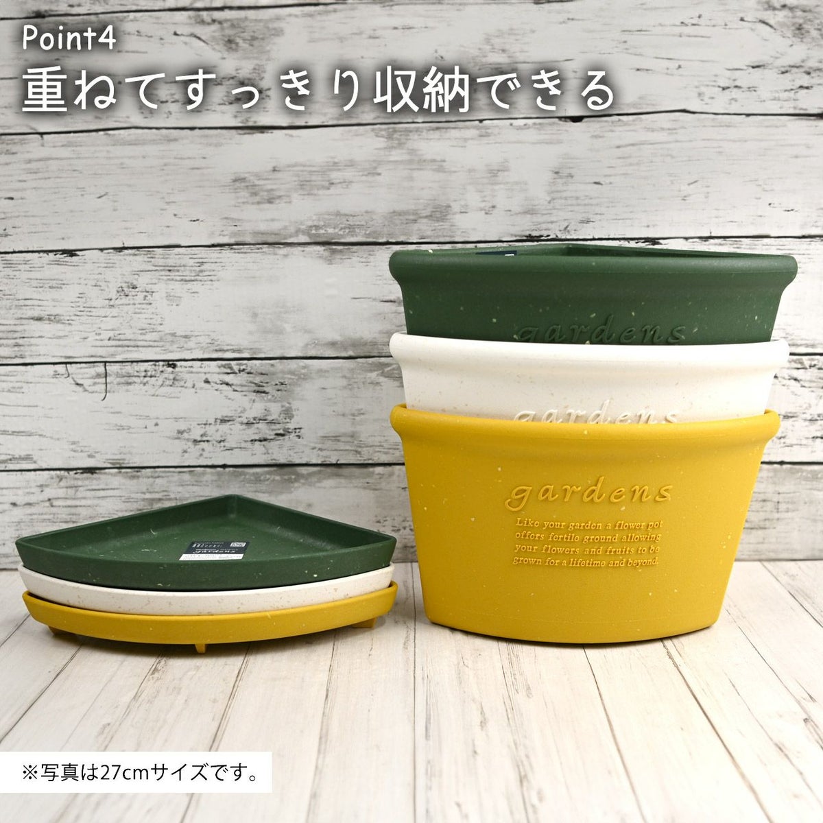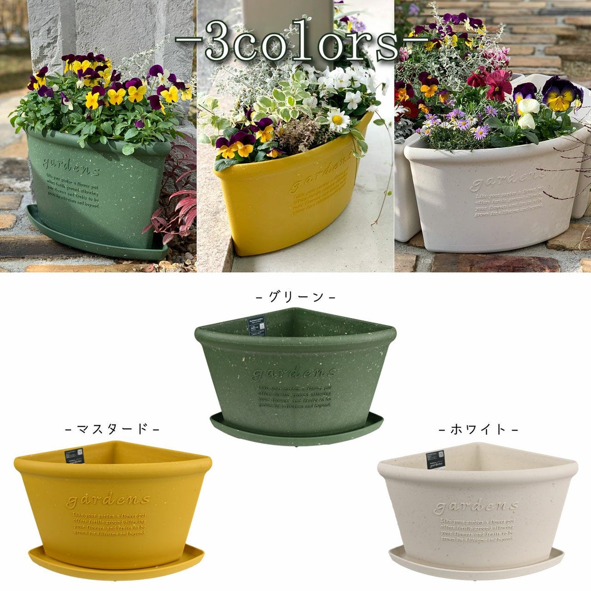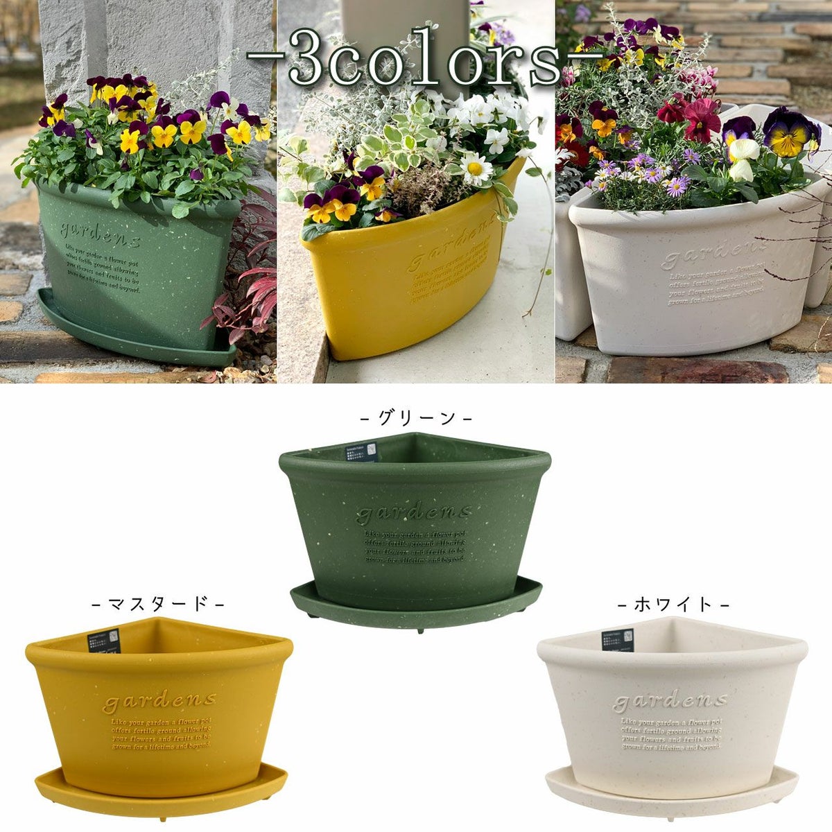 他の画像を見る 安心の日本製!ベランダ、玄関周りなどのコーナー、段差などの省スペースに置けちゃうプランター コーナーエコポット200 27cm 3L プランター 植木鉢 扇形 角 階段 おしゃれ 屋外 屋内 パピエ ガーデニング プラスチック 古紙 ガーデン 鉢 黄色 緑 白 販売価格 ¥ 2,400 税込 カートに入れる お気に入りに登録する