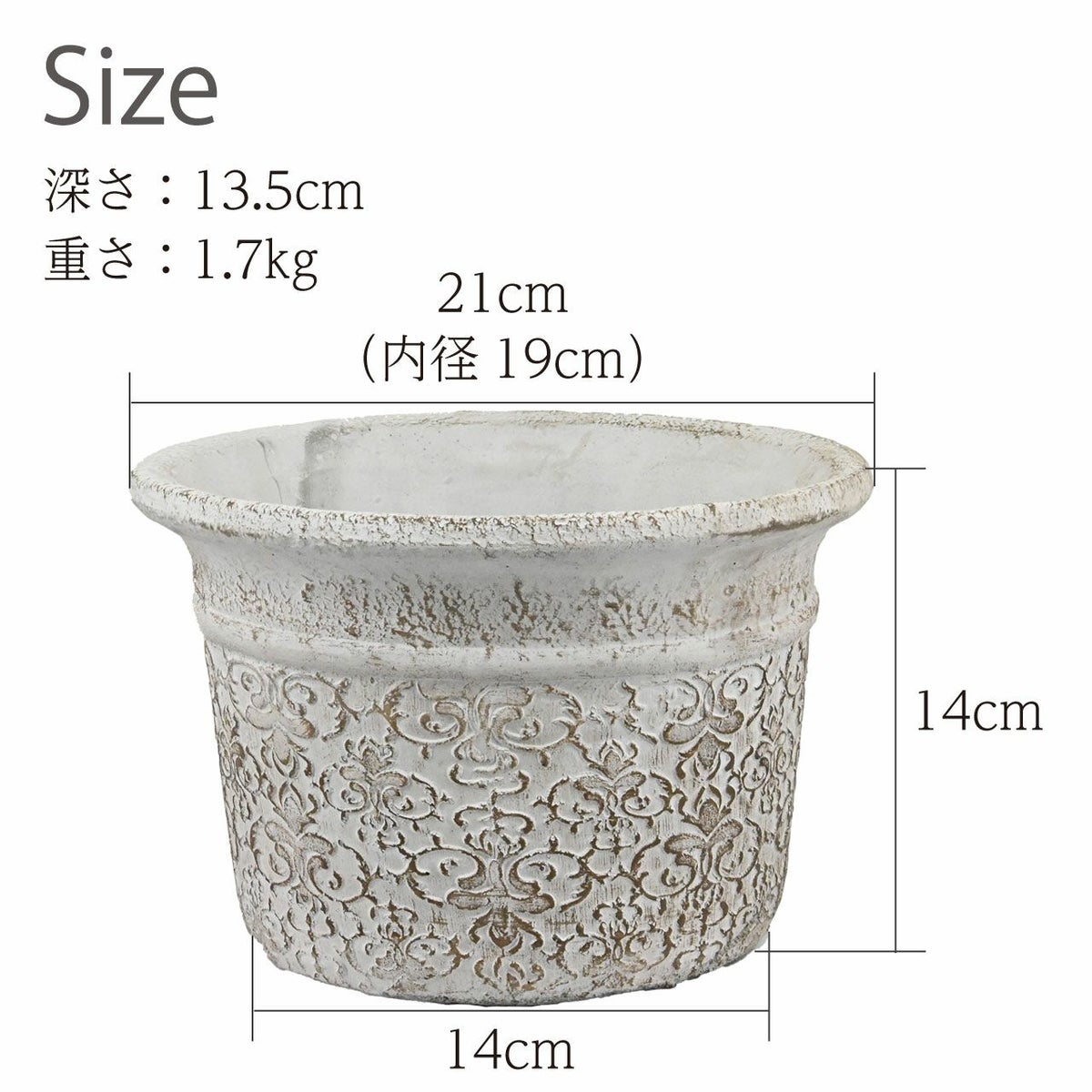 他の画像を見る ダマスク模様が上品なラウンド型のポット ディグリング ダマスクラウンドポット 内径19cm 植木鉢 プランター フラワーポット コベントガーデン CoventGarden アンティーク かわいい おしゃれ ガーデニング 園芸 屋外 セメント 販売価格 ¥ 2,580 税込 カートに入れる お気に入りに登録する