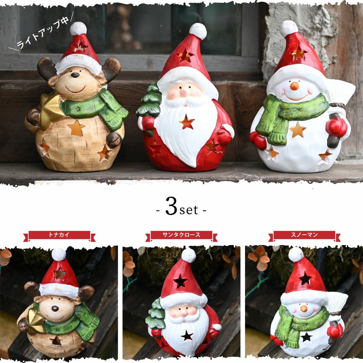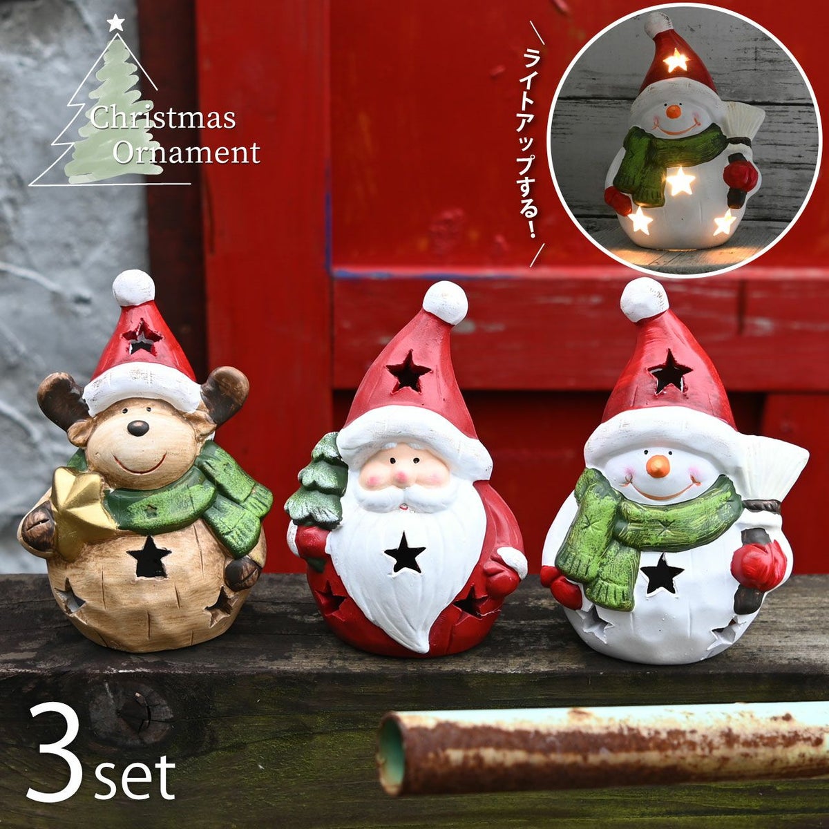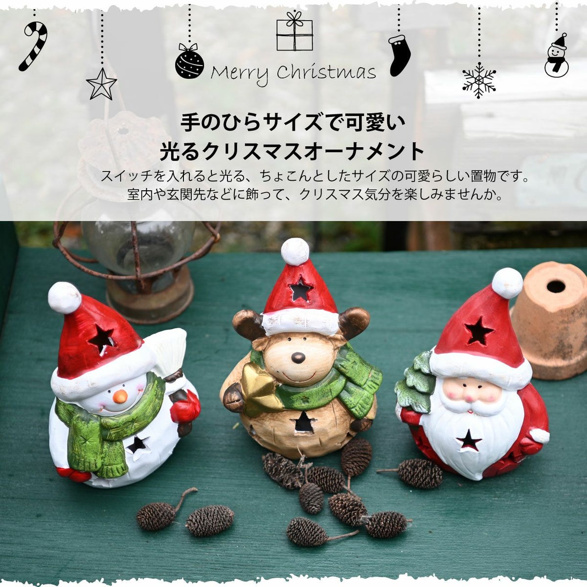他の画像を見る クリスマスをおしゃれに演出してくれる光る置き物 ちょこんとかわいい手のひらサイズ 光る クリスマスオブジェ 3点セット LEDライト付き ボタン電池式 トナカイ サンタクロース スノーマン 雪だるま オーナメント オブジェ 飾り 可愛い おしゃれ ギフト 販売価格 ¥ 8,800 税込 詳細を見る お気に入りに登録する