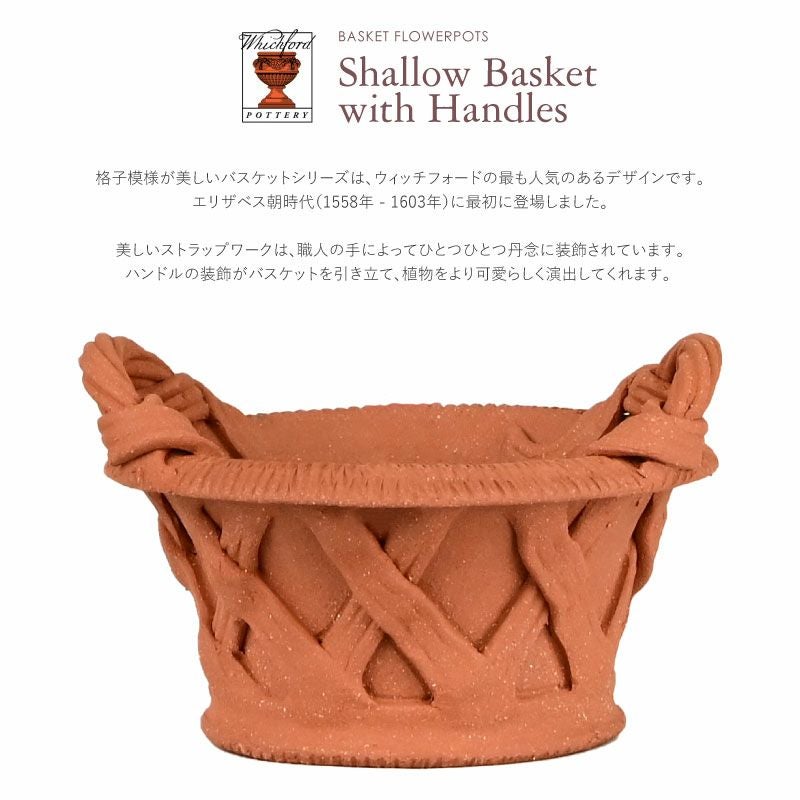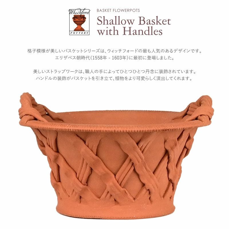 他の画像を見る 世界に一つだけのWhichfordのテラコッタ鉢。 芸術品とも呼べる上品で美しい植木鉢は一生モノとして愛用できます。 英国 ウィッチフォード シャローバスケット ハンドル付 直径16cm 植木鉢 販売価格 ¥ 10,560 税込 カートに入れる お気に入りに登録する