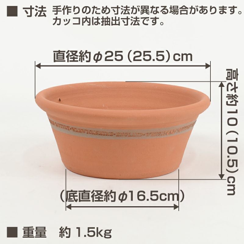 他の画像を見る シンプルさの中にも気品が漂います。 英国 Whichford ウィッチフォード RHS ウィズリー ガーデナーズ パン 直径25センチ(約8号鉢)のテラコッタ 販売価格 ¥ 5,060 税込 カートに入れる お気に入りに登録する
