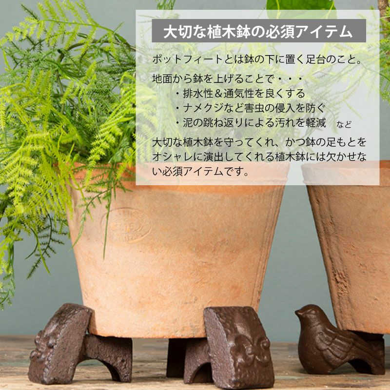 他の画像を見る 鉢をおしゃれに演出するアンティーク調のポットフィート。 大切な植木鉢を蒸れや暑さ、害虫などから守ります。 esschert design バード ポットフィート 植木鉢の足 3個セット ギフト 販売価格 ¥ 3,280 税込 詳細を見る お気に入りに登録する