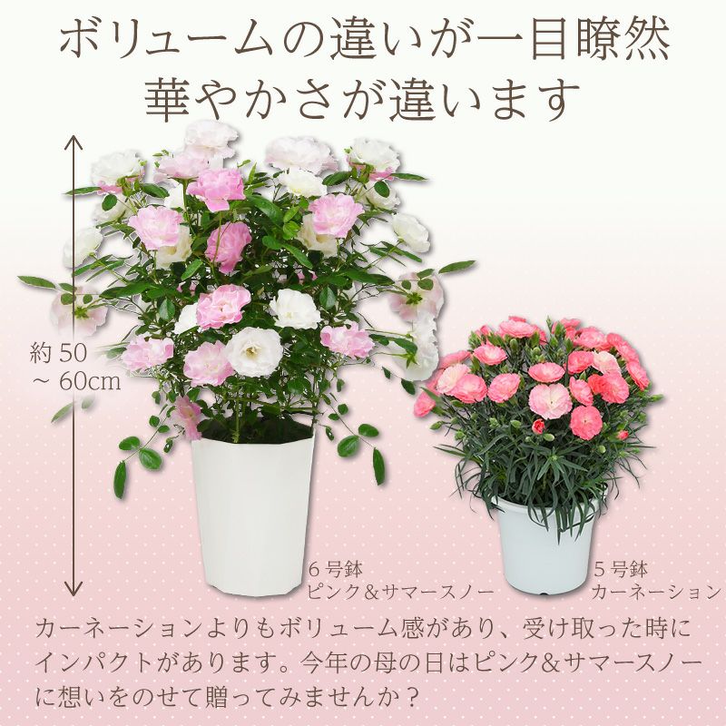 他の画像を見る 大好きなお母さんの笑顔が見たいから、 日頃の感謝の気持ちをお花に込めて贈ります。 7号鉢 2色植え 幻の薔薇 ピンク&サマースノー 母の日プレゼント用ラッピング付 2025年 花 ローズ 鉢植え ハルガスミ つる薔薇 花鉢 送料無料 販売価格 ¥ 8,800 税込 販売を終了しました。 在庫切れ 詳細を見る お気に入りに登録する