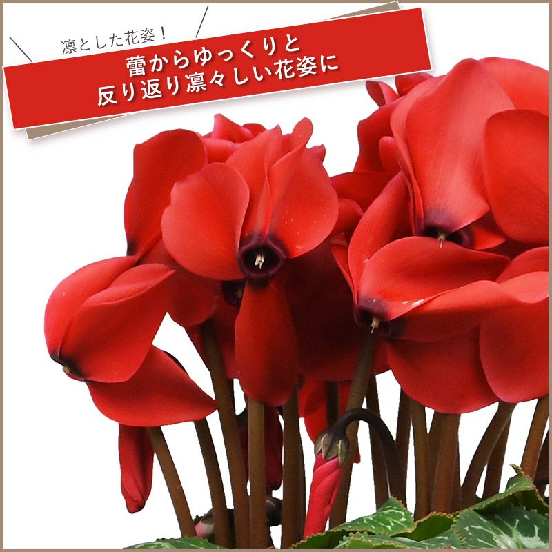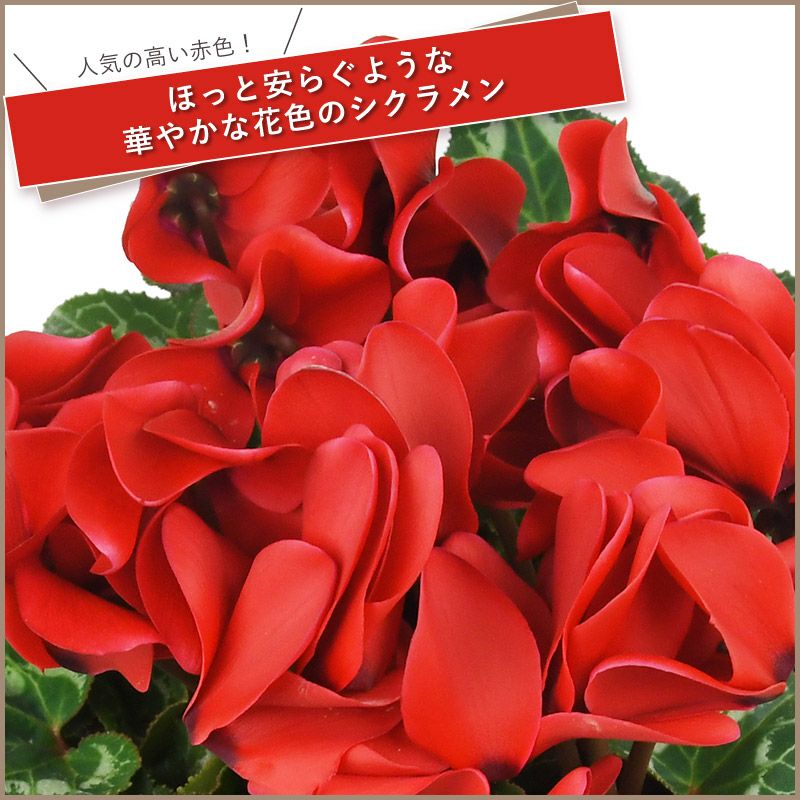 他の画像を見る 冬のギフト贈り物に クリスマスを彩る人気の高い赤色! 【お届け 12/6~12/13】 【数量限定・送料無料】シクラメン 5号 鉢植え ハリオスレッドレブル 赤色 選べるポットカバー ラッピング無料 鉢カバー ギフト 販売価格 ¥ 3,980 税込 販売を終了しました。 在庫切れ 詳細を見る お気に入りに登録する