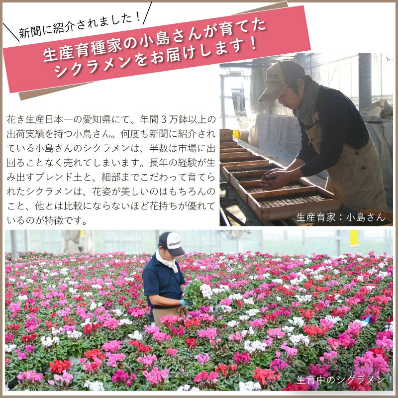 他の画像を見る 冬のギフト贈り物に やさしく艶やかな花色が美しく整った花姿 【お届け 12/6~12/13】 【数量限定・送料無料】シクラメン 5号 鉢植え ハリオスサーモンフレーム ピンク 選べるポットカバー ラッピング無料 鉢カバー ギフト 販売価格 ¥ 3,980 税込 販売を終了しました。 在庫切れ 詳細を見る お気に入りに登録する