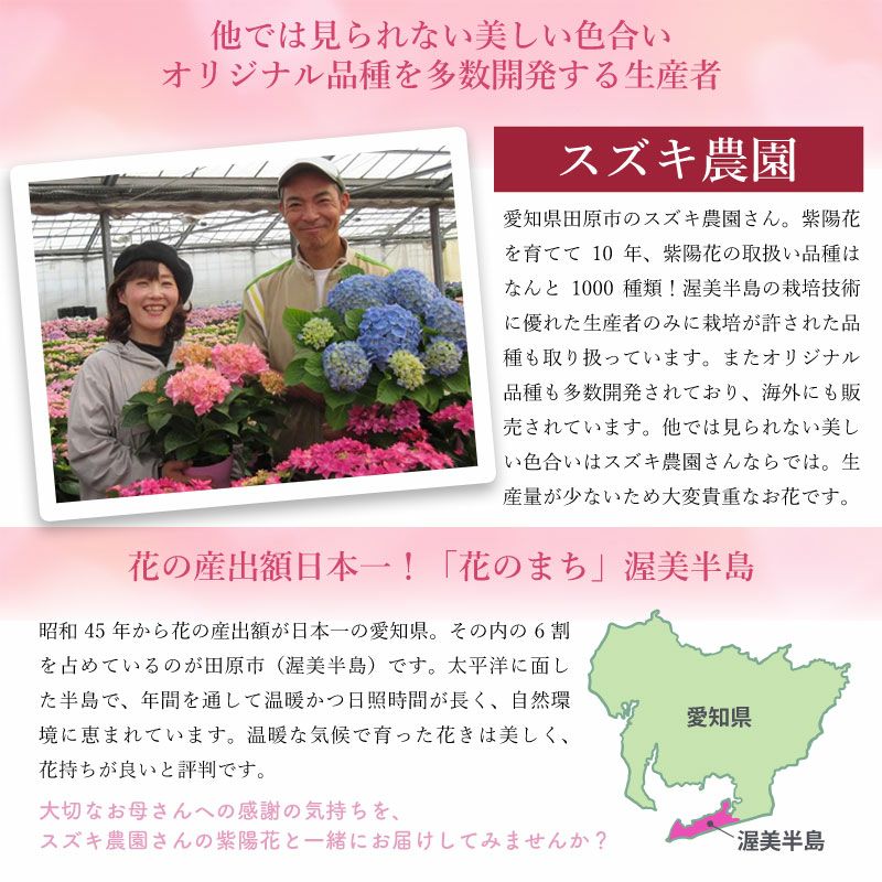 他の画像を見る 気持ち伝わる贈り物 スズキ農園オリジナル品種のアジサイ【お届け期間:5月9日~5月11日】 【数量限定】紫陽花 レッドパッション 5号鉢 鉢植え ギフト 母の日プレゼント用ラッピング付 2025年 てまり咲き 赤色 販売価格 ¥ 5,500 税込 販売を終了しました。 在庫切れ 詳細を見る お気に入りに登録する
