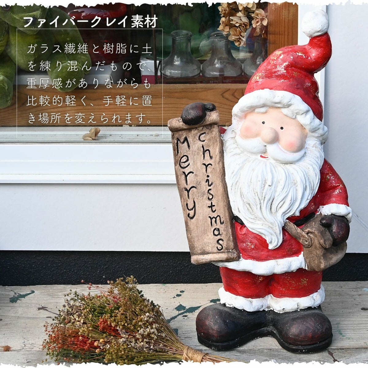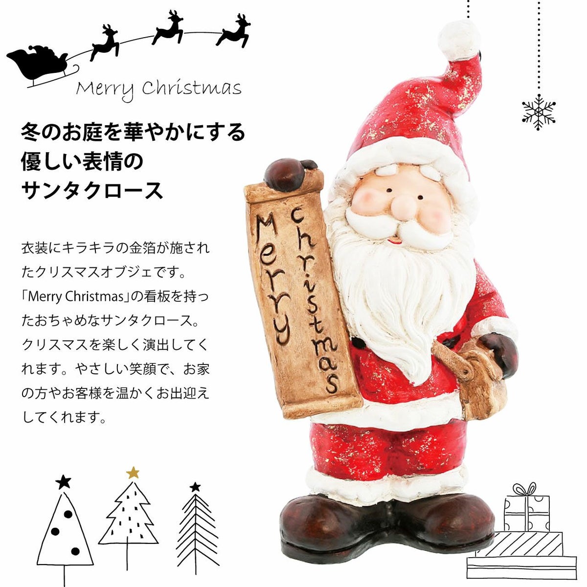 他の画像を見る お庭にクリスマス雑貨を飾って楽しもう! メリークリスマスの看板を持ったサンタさんの置き物 クリスマス オブジェ サンタクロース 高さ44cm 屋外 飾り 人形 置物 雑貨 かわいい おしゃれ ファイバークレイ 販売価格 ¥ 6,800 税込 在庫切れ 詳細を見る お気に入りに登録する