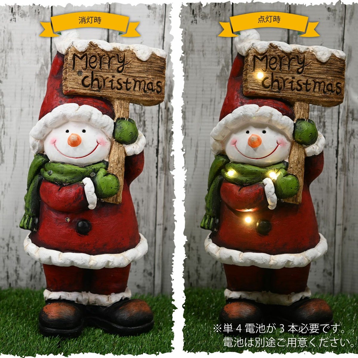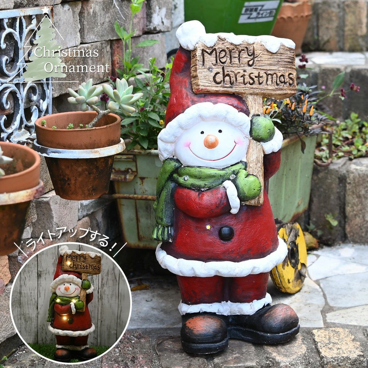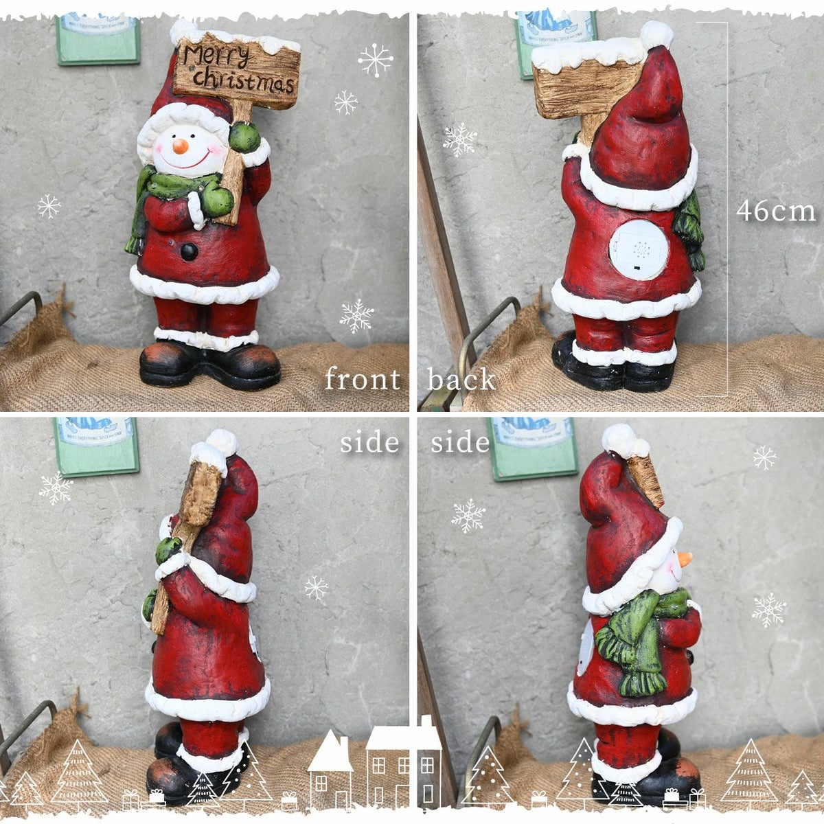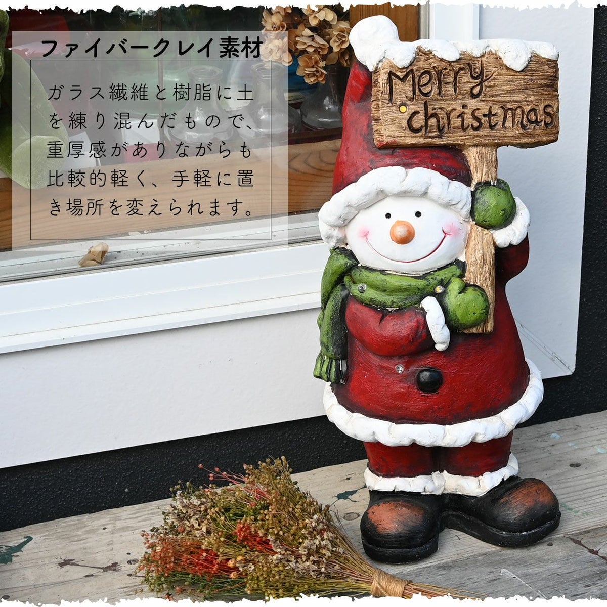 他の画像を見る メリークリスマスの看板を持ったサンタ衣装の雪だるまの置き物 クリスマス オブジェ スノーマン 雪だるま 高さ46cm 飾り 人形 置物 雑貨 かわいい おしゃれ ファイバークレイ 販売価格 ¥ 7,200 税込 在庫切れ 詳細を見る お気に入りに登録する