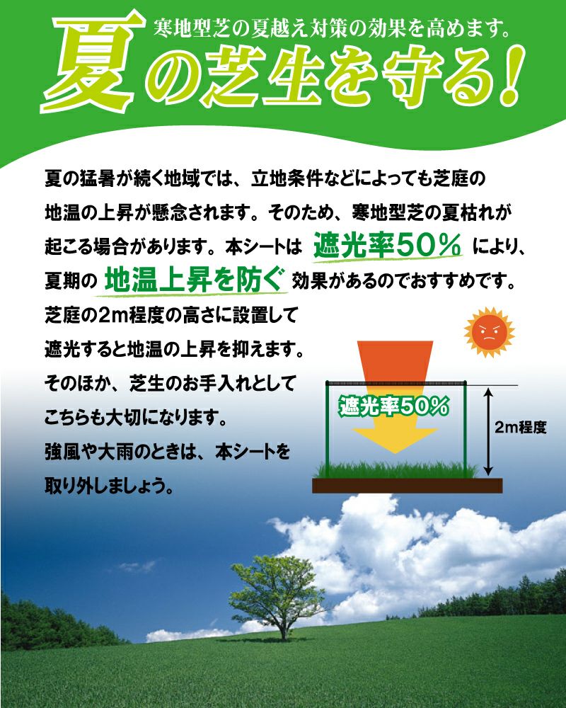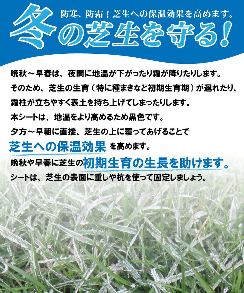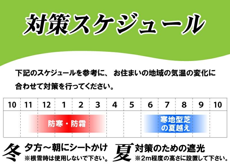 他の画像を見る 夏の暑さ、冬の寒さ対策に。芝生を地温の変化から守ります! 【夏冬兼用】芝生用遮光シート・寒冷紗1.8m×5m【説明書付き】 販売価格 ¥ 3,980 税込 カートに入れる お気に入りに登録する