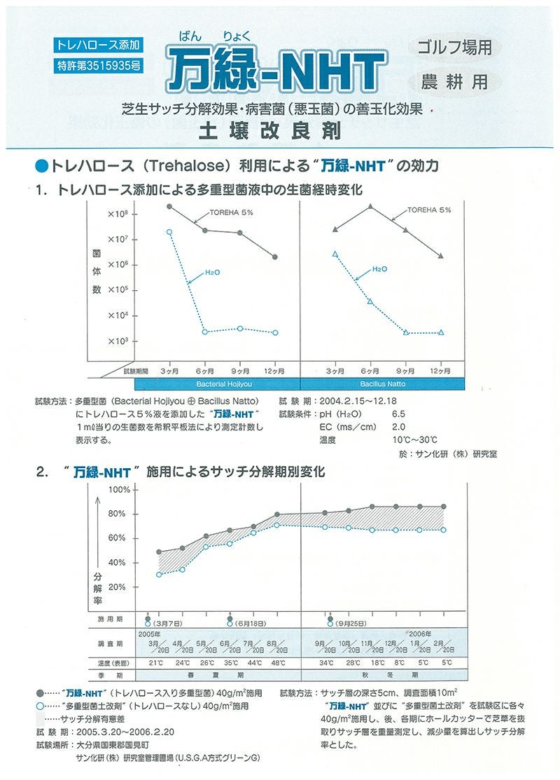 他の画像を見る /使用説明書付き/芝生サッチ分解効果・病害菌(悪玉菌)の善玉化効果 【送料込】芝生用土壌改良剤 万緑-NHT 20kg 細粒タイプ 販売価格 ¥ 7,000 税込 詳細を見る お気に入りに登録する