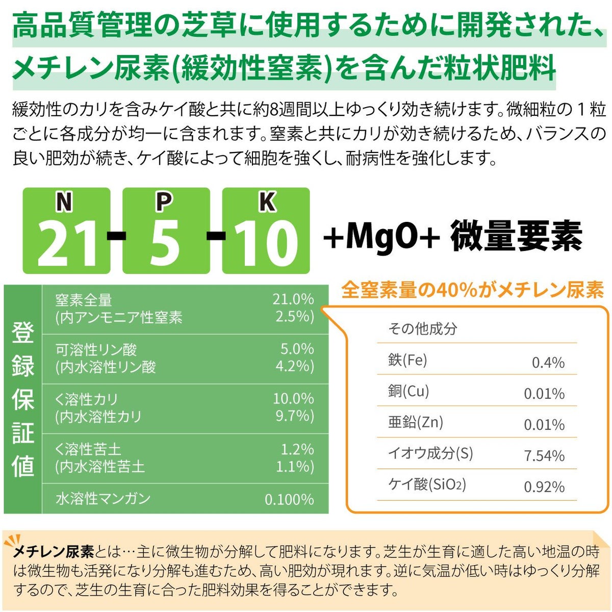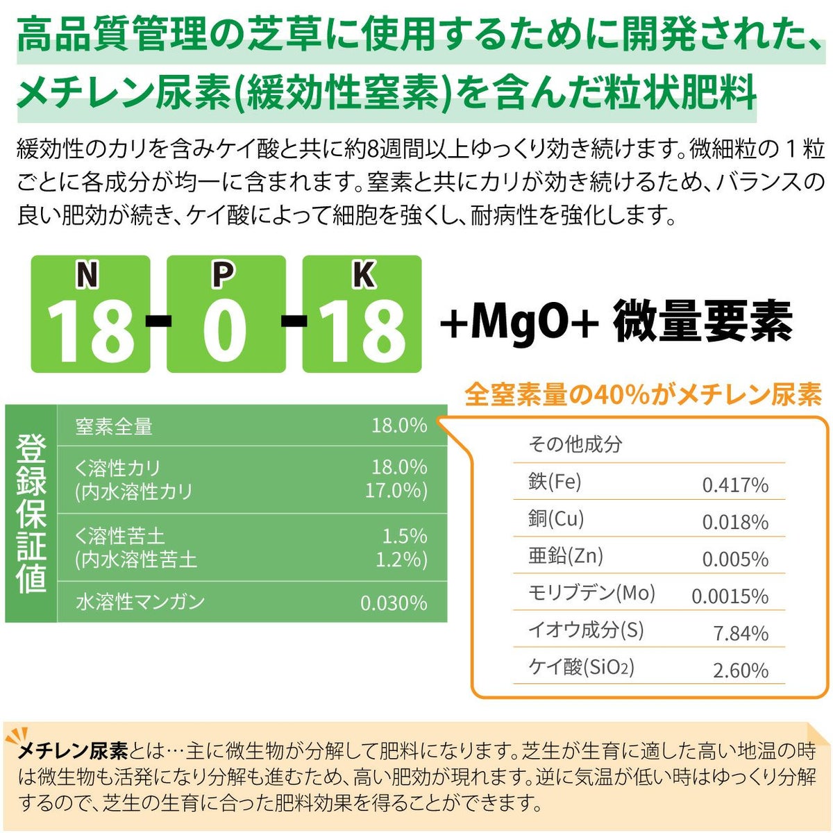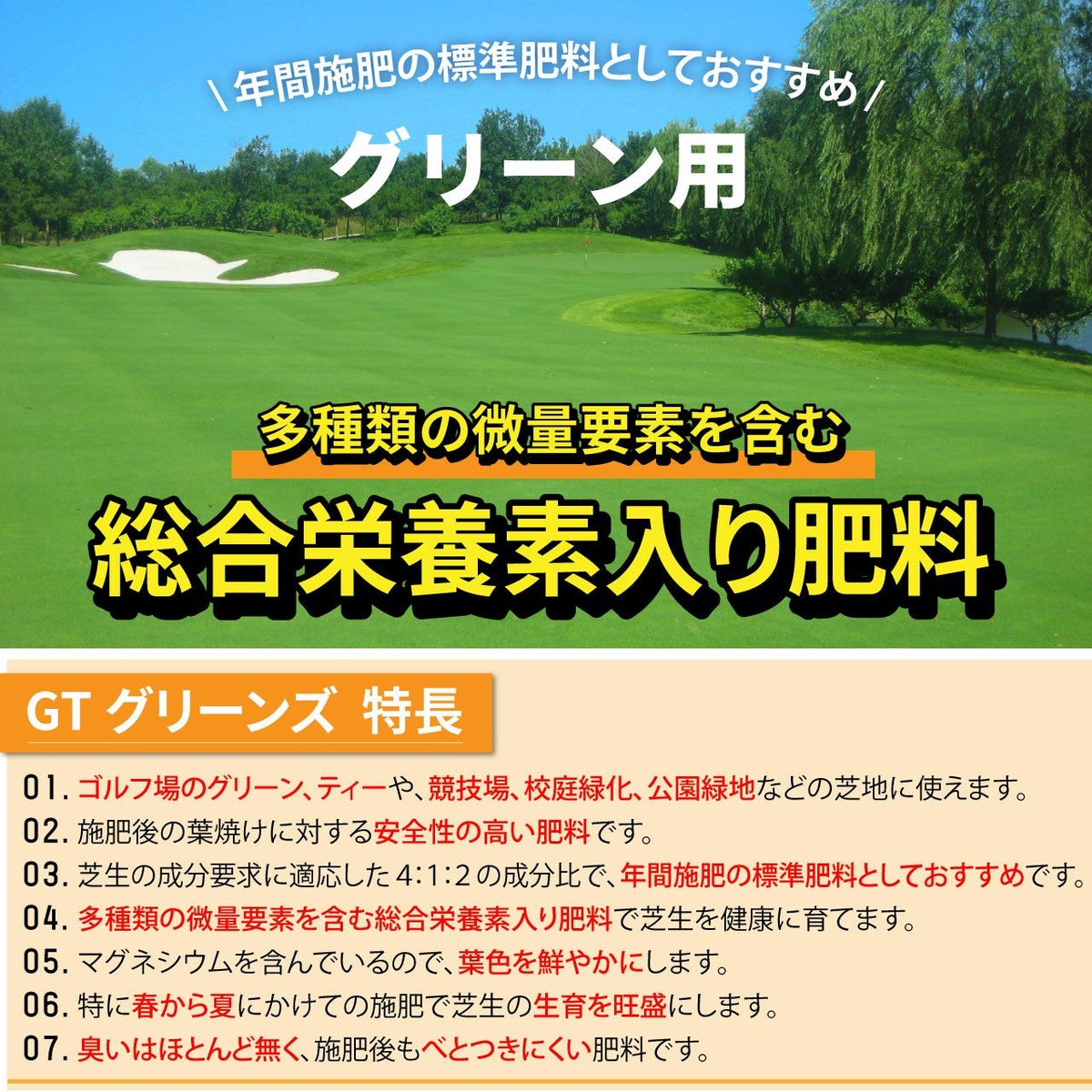 他の画像を見る ゴルフ場で使われているプロ用化成肥料。多種類の微量要素を含む総合栄養素入りの芝生専用肥料です。 HYPONeX ICL GTグリーンズ 20㎏ グリーン用緩効性肥料メチレン尿素 ハイポネックス 業務用【予約注文品 約1週間で出荷】 販売価格 ¥ 28,886 税込 カートに入れる お気に入りに登録する
