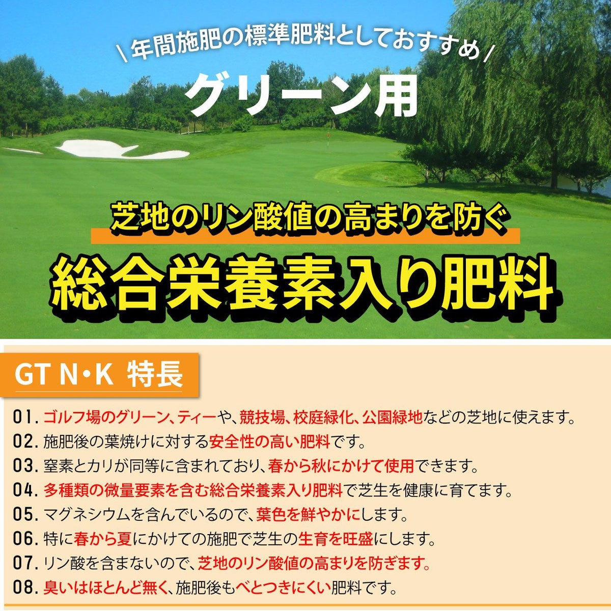 他の画像を見る ゴルフ場で使われているプロ用化成肥料。多種類の微量要素を含む総合栄養素入りの芝生専用肥料です。 HYPONeX ICL GTN・K 20㎏ グリーン用緩効性肥料メチレン尿素 ハイポネックス 業務用【予約注文品 約1週間で出荷】 販売価格 ¥ 28,600 税込 カートに入れる お気に入りに登録する