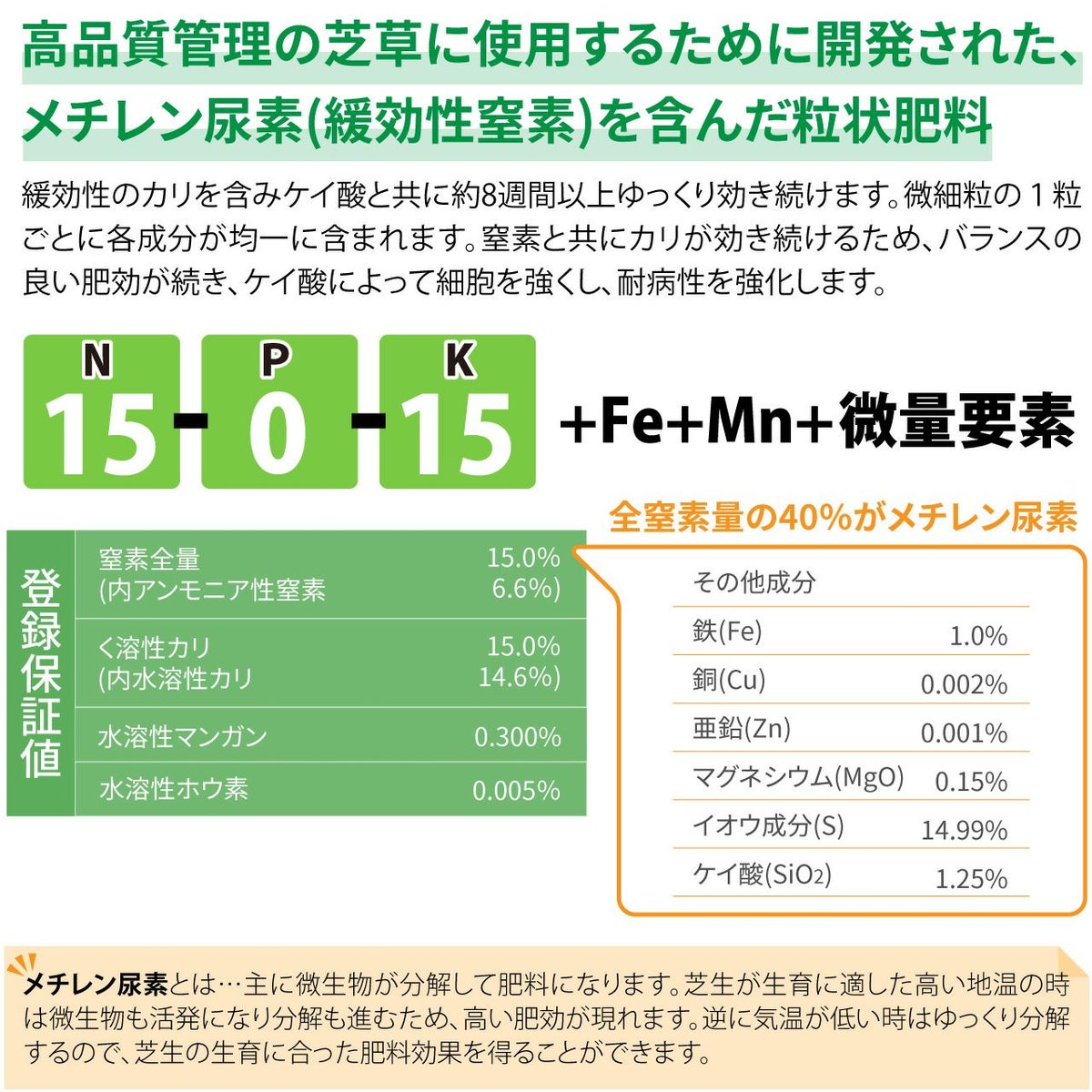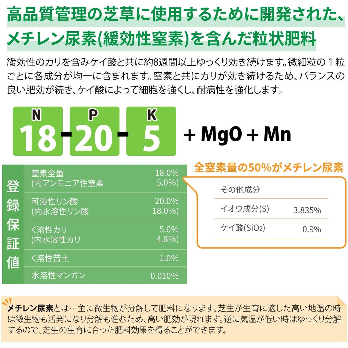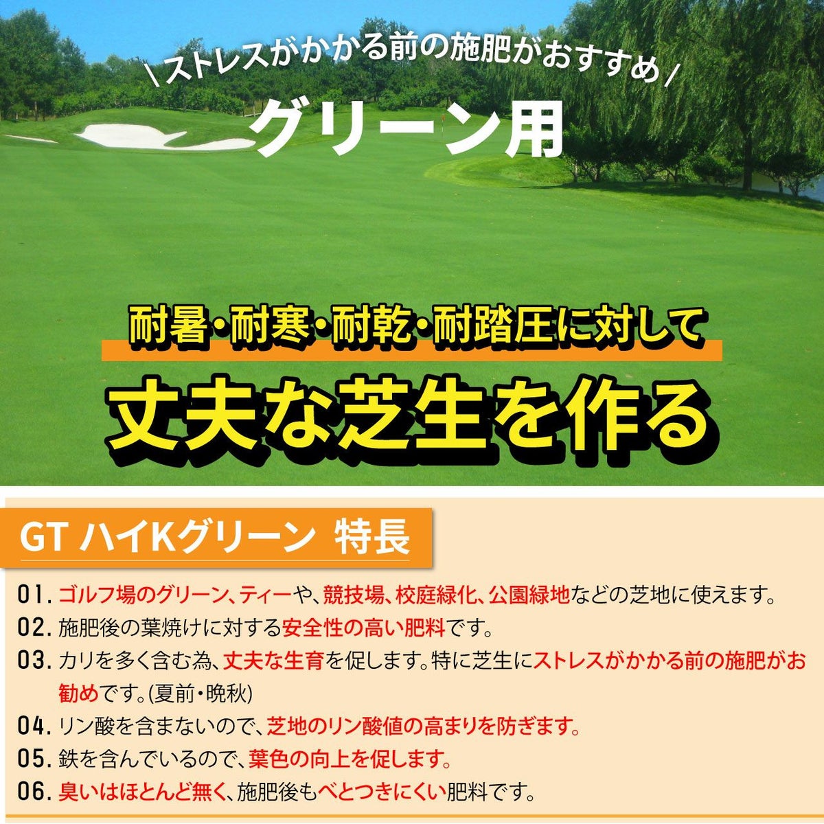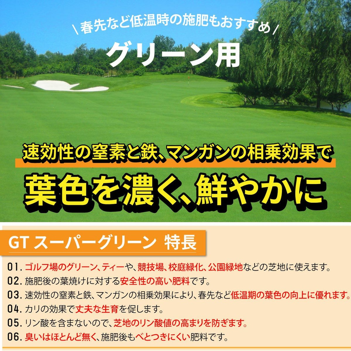 他の画像を見る ゴルフ場で使われているプロ用化成肥料。低温時の施肥にもおすすめ!葉色を濃く鮮やかにする芝生専用肥料です。 HYPONeX ICL GTスーパーグリーン 20㎏ グリーン用緩効性肥料メチレン尿素 ハイポネックス 業務用【予約注文品 約1週間で出荷】 販売価格 ¥ 26,026 税込 カートに入れる お気に入りに登録する