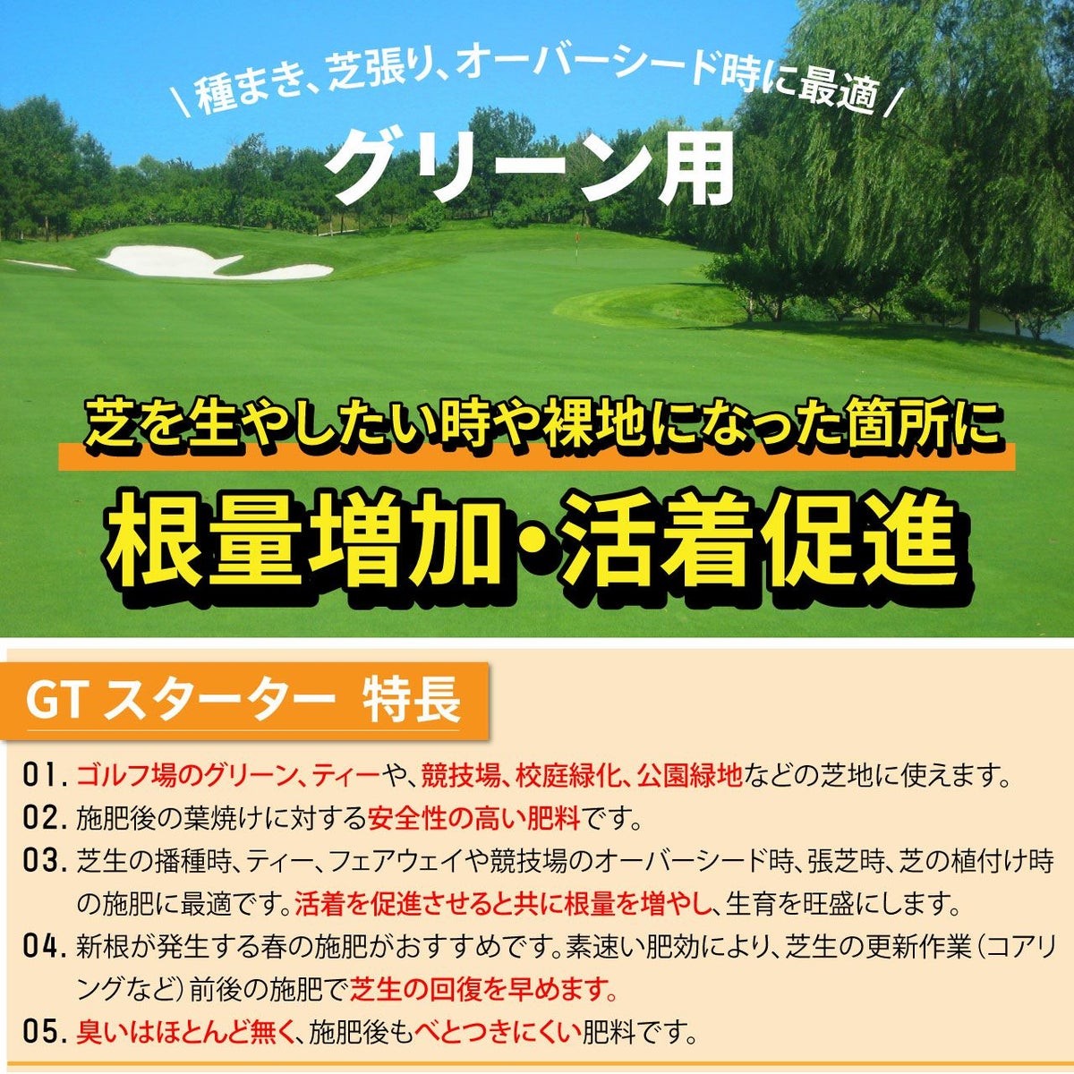他の画像を見る /使用説明書付き/プロが認める、ゴルフ場で使われているサッチ分解剤の決定版!!多機能型サッチ分解剤入り肥料です。 サッチ分解促進剤入り芝生専用肥料グリーンクリーナー 5kg入り 販売価格 ¥ 2,900 税込 カートに入れる お気に入りに登録する