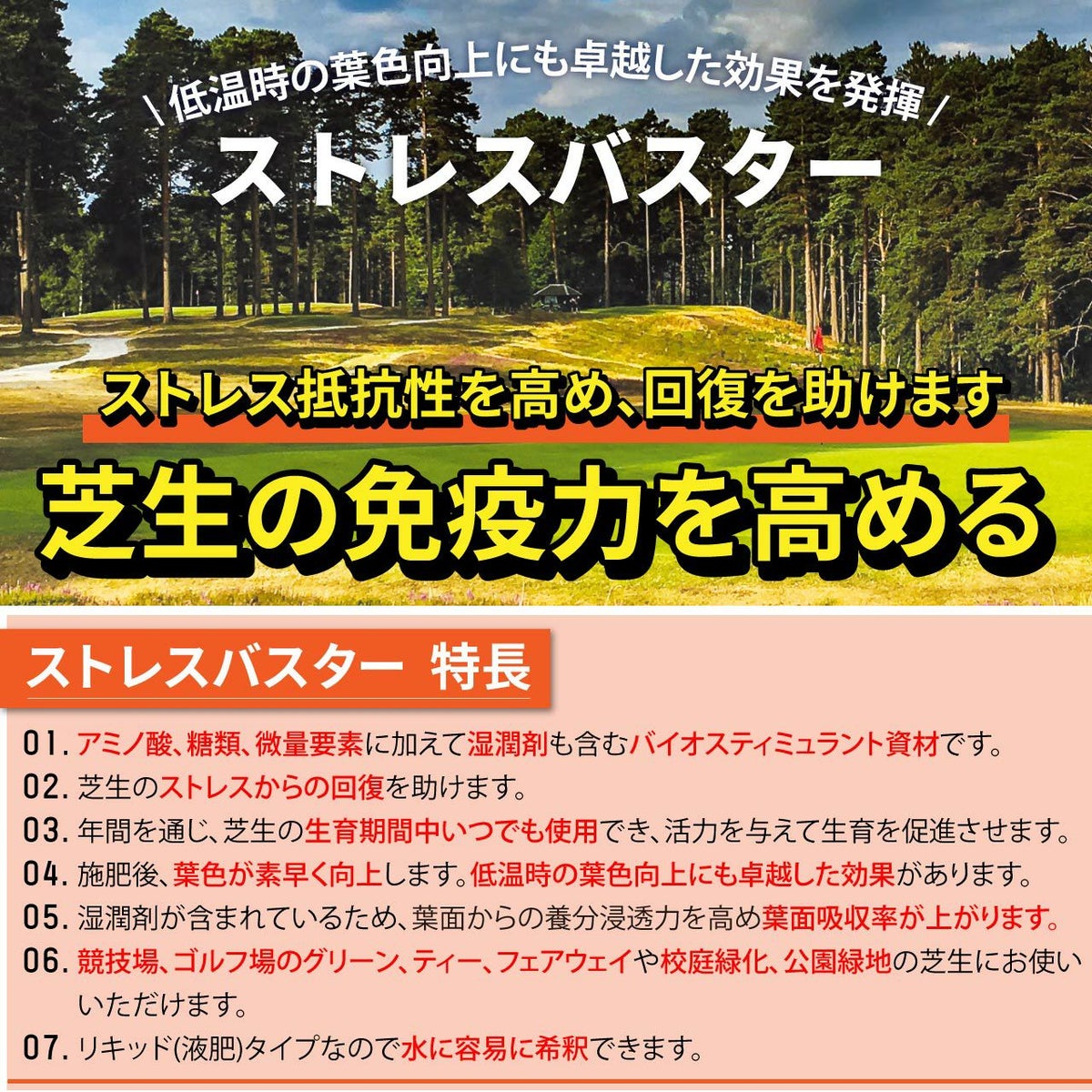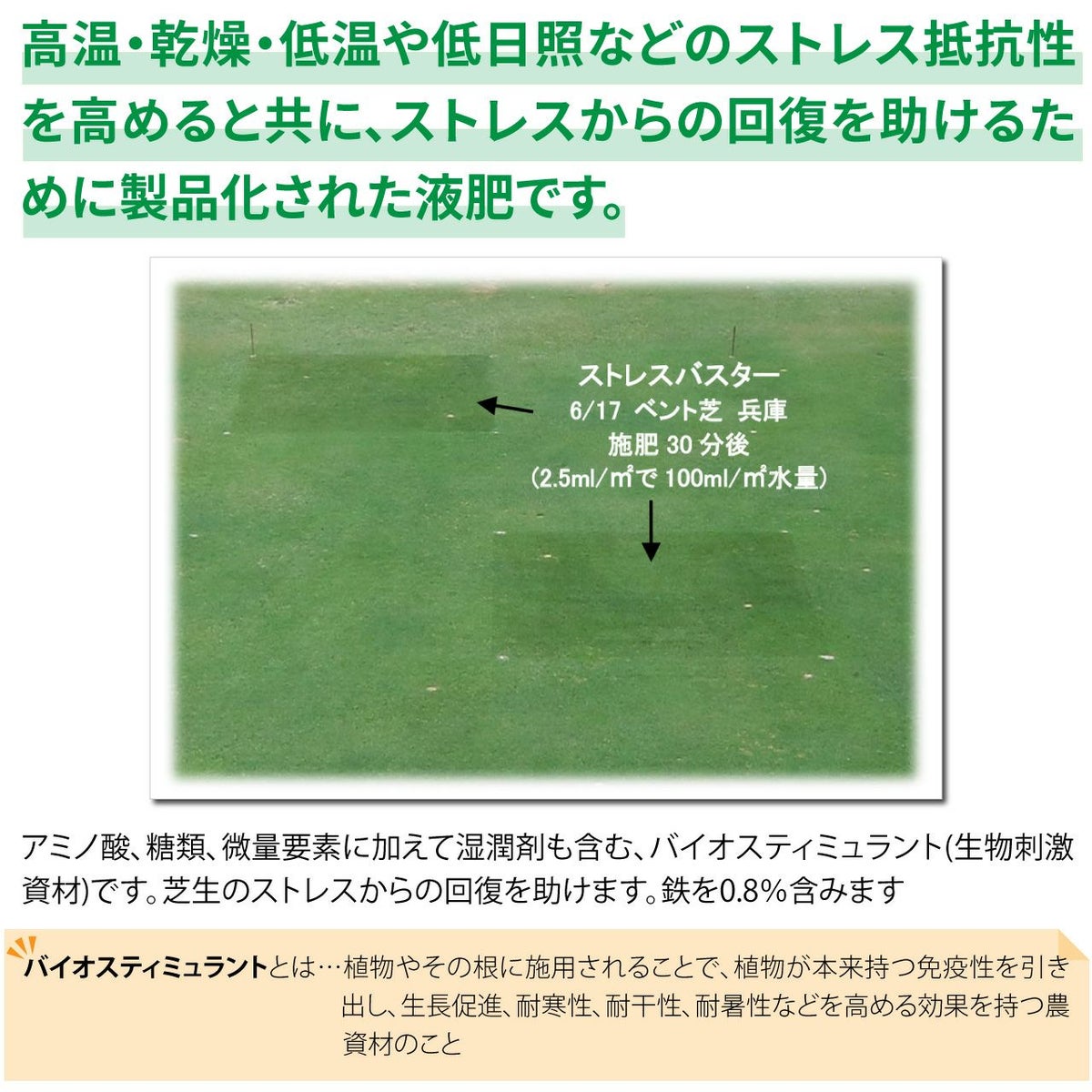 他の画像を見る ゴルフ場で使われているプロ用液肥。高温、乾燥、低温や低日照などのストレス抵抗性を高めると共にストレス回復を助ける液肥です。 HYPONeX ICL 芝生専用リキッド有機活力液肥ストレスバスター 20L 10L×2本 ハイポネックス 業務用【予約注文品 約1週間で出荷】 販売価格 ¥ 68,860 税込 カートに入れる お気に入りに登録する