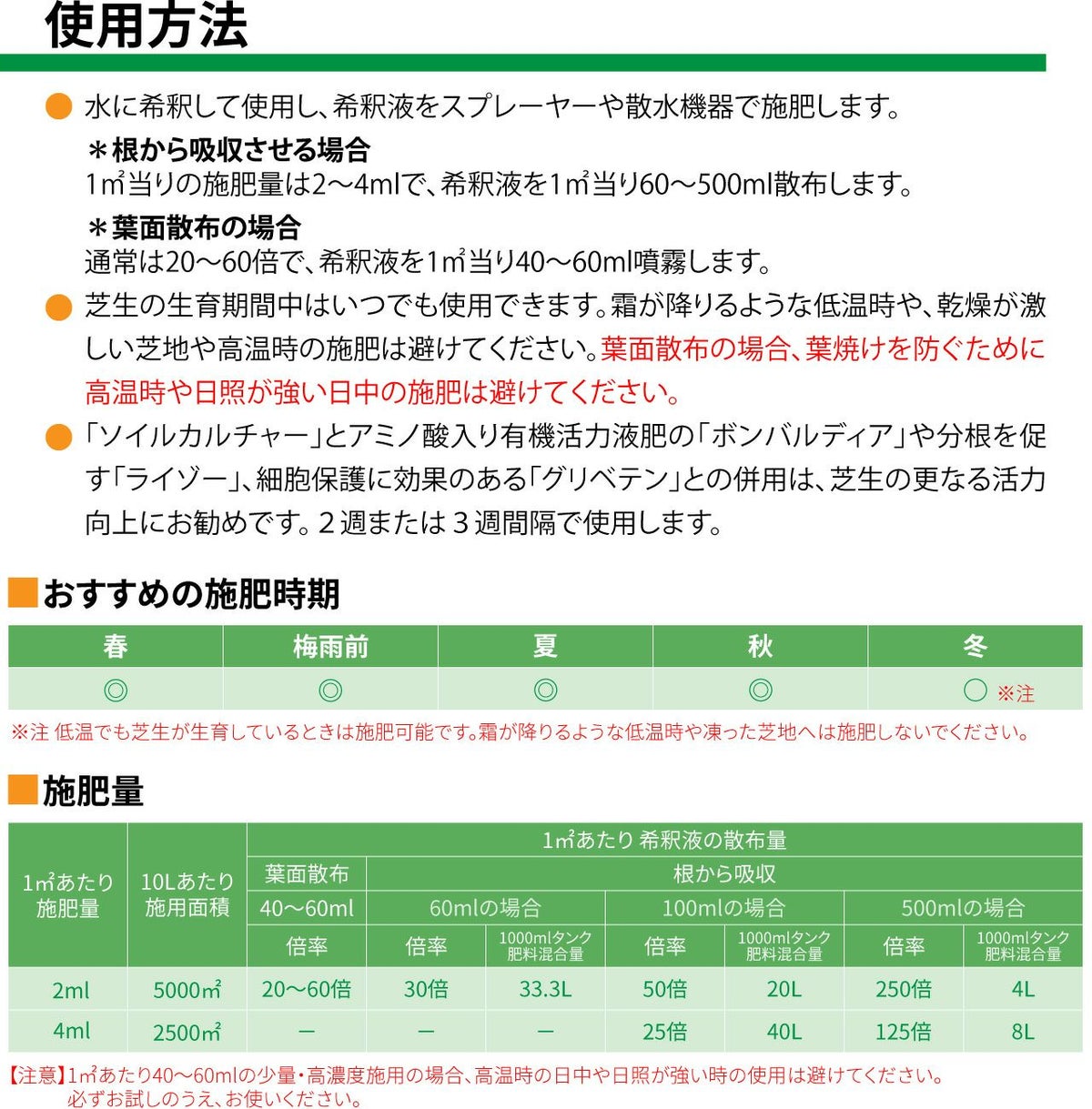 他の画像を見る 使用説明書付き疲れた芝生のストレス回復と、根の活性化に効果を発揮する液体肥料です。猛暑を乗り切るベントグラスの夏越対策にもおすすめ! 芝生専用特殊海藻クリーム入り葉面散布用肥料 液肥 アルゲライザー1kg(約800ml)入り 販売価格 ¥ 8,800 税込 カートに入れる お気に入りに登録する